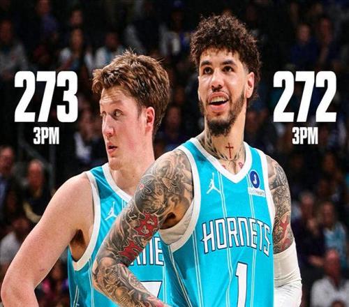 同時三球與克努佩爾也成為NBA歷史上第二對單賽季均命中270+三分球的隊友,此前同樣只有庫里與克萊做到過(2次)。