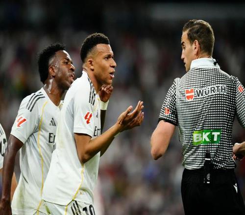 可周五發(fā)生的事,根本無從辯解。他明明看到了球員身上的血跡,卻視若無睹。上半場,一次情節(jié)更輕微、甚至沒有造成身體傷害的動作,他二話不說就吹了姆巴佩犯規(guī),還掏出了黃牌。但面對法國人遭遇的那個明顯的點球爭議——維托爾-雷斯的肘擊就發(fā)生在他眼皮底下——他卻立刻擺手示意沒有犯規(guī)。隨后他湊到耳機旁,而特魯希略居然說出了“繼續(xù)!”這種荒唐的話。西甲聯(lián)賽還出來為他們辯解,聲稱所有鏡頭都沒拍到血跡。照這么說,從今往后,吹罰這種顯而易見的點球,要么得見血,要么就當沒看見……除非你穿的不是皇馬的白色球衣。