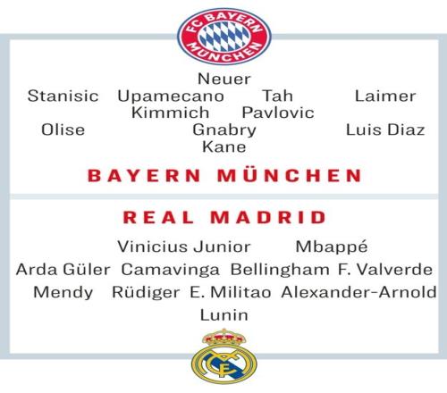 踢球者預(yù)測(cè)拜仁vs皇馬首發(fā):格納布里出戰(zhàn),貝林+卡馬文加雙后腰