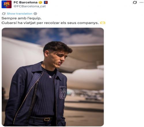 紅牌停賽,巴薩官推曬庫(kù)巴西隨隊(duì)出征馬競(jìng)照片:永遠(yuǎn)與球隊(duì)在一起