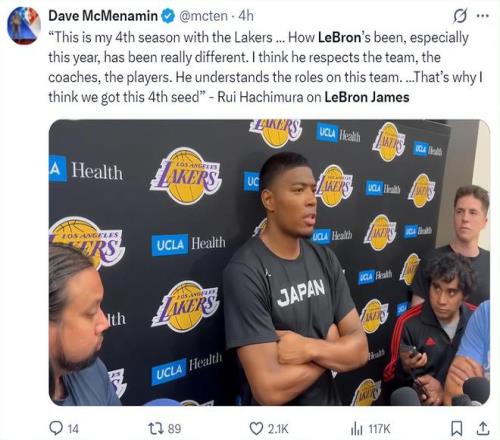 八村壘談到詹姆斯:這已經(jīng)是我來到湖人的第四年,現(xiàn)在看到勒布朗的狀態(tài)真的很不一樣,我覺得他非常尊重球隊、教練、隊友,他也清楚自己在這支球隊扮演的角色,這也是我們能排在西部上半?yún)^(qū)的關鍵。