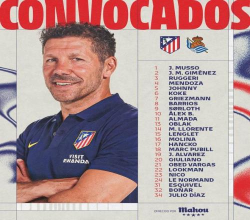 馬德里競技官方公布了國王杯決賽對陣皇家社會的比賽大名單,格列茲曼領(lǐng)銜,希門尼斯、漢茨科、巴里奧斯等人回歸,比賽將于北京時間4月19日3:00進行。