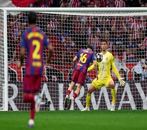 4月15日凌晨,馬競(jìng)主場(chǎng)對(duì)陣巴薩的歐冠四分之一決賽次回合。上半場(chǎng),巴薩攻擊型中場(chǎng)費(fèi)爾明·洛佩斯(Fermín López)試圖頭球攻門,馬競(jìng)門將穆索(Juan Musso)出擊撲救,結(jié)果靴底直接踹中費(fèi)爾明面部。