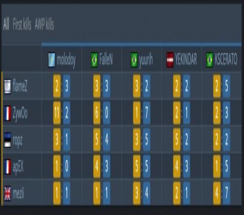 Vitality:mezii、apEX、ropz、flameZ、ZywOo