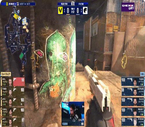 次回合B點(diǎn)剛槍,ropz爆轟三殺,molodoy殘局1v2送ropz四殺拿下第2分打出黑豹暫停。