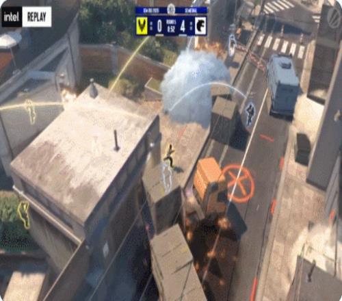 第10回合,開場(chǎng)雙方互穿長(zhǎng)管紛紛殘血,apex手雷炸飛教父,狂哥A大換掉火仔,yuurih廁所換掉apex,mezii進(jìn)A下包,小蜜蜂拿到第4分。