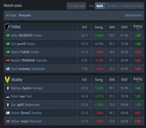 FURIA:molodoy、yuurih、FalleN、KSCERATO、YEKINDAR
