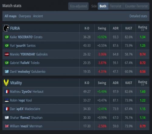FURIA:molodoy、yuurih、FalleN、KSCERATO、YEKINDAR