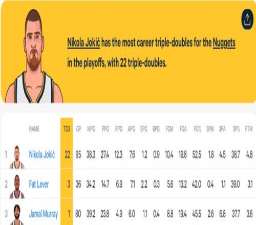2.約基奇季后賽生涯第22次三雙,繼續(xù)刷新隊史第一紀(jì)錄;