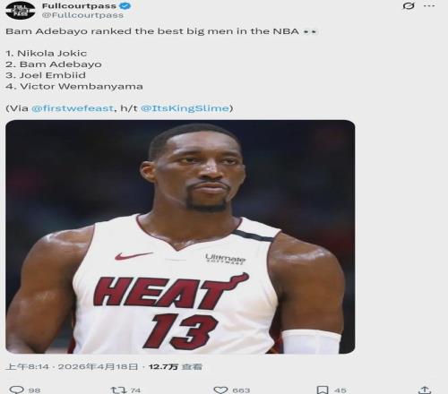 近日,熱火內(nèi)線阿德巴約和隊友小海梅-哈克斯一起錄制節(jié)目。阿德巴約在節(jié)目中對當今聯(lián)盟的內(nèi)線進行排名:約基奇、自己、恩比德、文班亞馬。是的,阿德巴約認為自己比文班和恩比德強,是當今NBA的第二中鋒,僅次于約基奇。