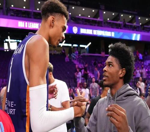 在當(dāng)時(shí),年僅18歲的文班亞馬和亨德森被認(rèn)為是2023年選秀的“絕代雙驕”,這兩場(chǎng)比賽吸引了超過(guò)200名NBA球探與高管,以及詹姆斯、保羅等一線巨星到場(chǎng)觀戰(zhàn),且由ESPN進(jìn)行全美直播,熱度遠(yuǎn)超普通季前賽。