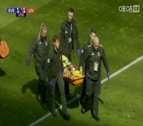 體育播報(bào)04月19日宣 英超第33輪,默西塞德郡德比,埃弗頓vs利物浦,第54分鐘,貝托鏟射破門,鞋釘?shù)诺今R馬爾達(dá)什維利,馬馬爾達(dá)什維利痛苦倒地,隨后被擔(dān)架抬出場外,紅軍三門伍德曼替補(bǔ)登場。