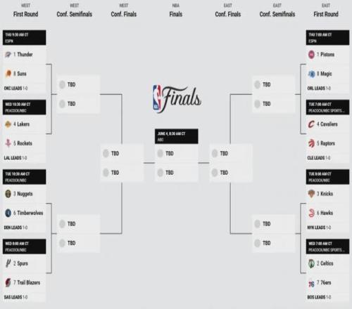 今年季后賽首輪G1對(duì)決全部結(jié)束,具體如下: