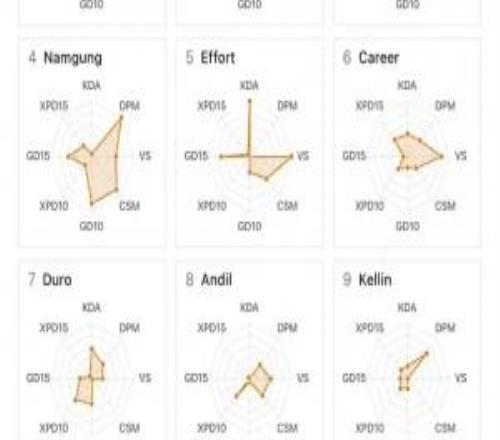 電競(jìng)體育4月20報(bào)道 近日外網(wǎng)網(wǎng)友分享了LCK第三周的選手?jǐn)?shù)據(jù)圖,其中T1僅輔助選手Keria發(fā)揮較為出色,此前ShowMakr的數(shù)據(jù)圖略顯幽默,而更抽象的為deokdam,其數(shù)據(jù)圖僅一個(gè)靶心!