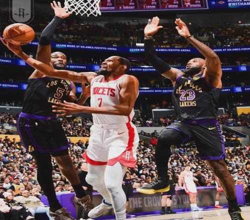 昨日杜蘭特復出,火箭仍不敵殘陣湖人,0-2落后。
