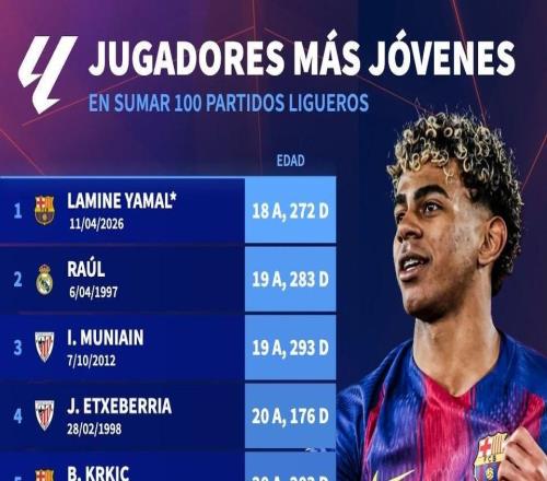 18歲272天,亞馬爾超越勞爾成為達(dá)成西甲百場歷史最年輕球員