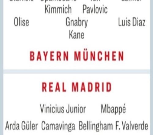 踢球者預(yù)測(cè)拜仁vs皇馬首發(fā):格納布里出戰(zhàn),貝林+卡馬文加雙后腰