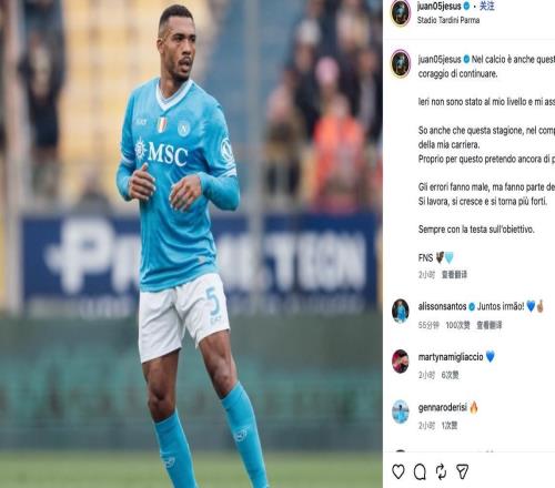 胡安-熱蘇斯在對陣帕爾馬的比賽中出現(xiàn)失誤,間接導致球隊丟球。賽后,這名那不勒斯后衛(wèi)通過社交媒體向球迷致歉。胡安-熱蘇斯是那場比賽中導致帕爾馬進球的責任人之一,這場比賽也
