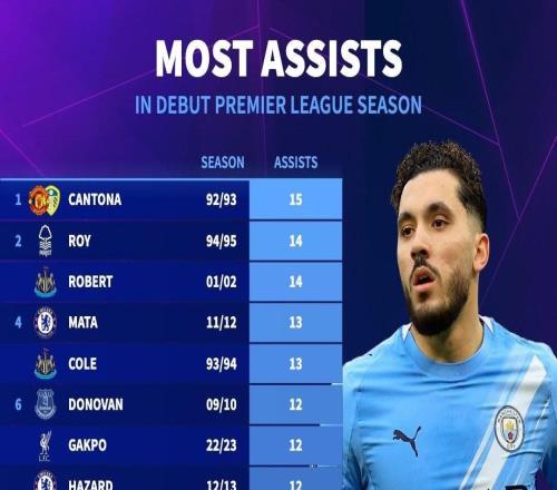 英超處子賽季助攻榜:坎通納15次居首,謝爾基10次暫列第17
