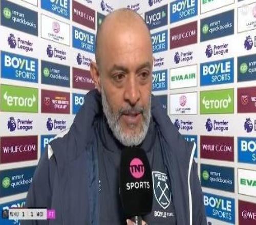 英超第30輪,西漢姆聯(lián)主場(chǎng)1-1戰(zhàn)平曼城,西漢姆聯(lián)主帥努諾賽后接受了TNT體育的采訪。努諾,今晚這場(chǎng)比賽對(duì)你們來(lái)說(shuō)...
