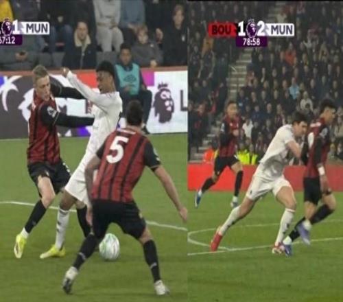 曼聯(lián)22平伯恩茅斯,11分鐘判罰天差地別,公平競賽成空談