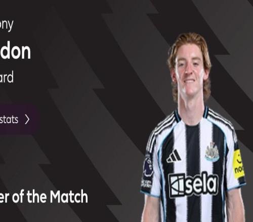 打入唯一進(jìn)球助紐卡客勝切爾西,安東尼戈登當(dāng)選全場(chǎng)最佳