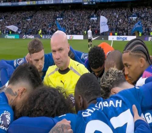 據(jù)《太陽報(bào)》報(bào)道,英超切爾西對(duì)陣紐卡斯?fàn)柭?lián)賽前出現(xiàn)有趣一幕,主裁判保羅-蒂爾尼意外站在切爾西賽前圍圈中央,...