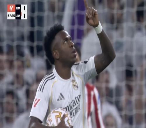 西甲第29輪,皇家馬德里主場對陣馬德里競技,下半場維尼修斯主罰點球破門,這是維尼修斯首次在西甲對陣馬競的比賽...