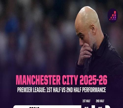 據(jù)Opta統(tǒng)計(jì),若本賽季英超只算上半場成績,曼城目前將以13分優(yōu)勢領(lǐng)跑。如果本賽季英超比賽在半場結(jié)束時(shí)就算完場...
