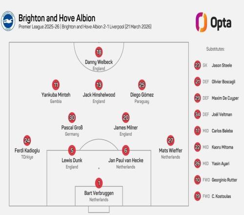 英超第31輪,布萊頓主場對陣?yán)锲?,本場比賽雙方首發(fā)陣容中一共有7名荷蘭球員,創(chuàng)英超歷史單場最多紀(jì)錄。本場比...