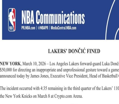 巨額罰款,湖人隊東契奇打完尼克斯隊后被NBA處以50000美元罰款