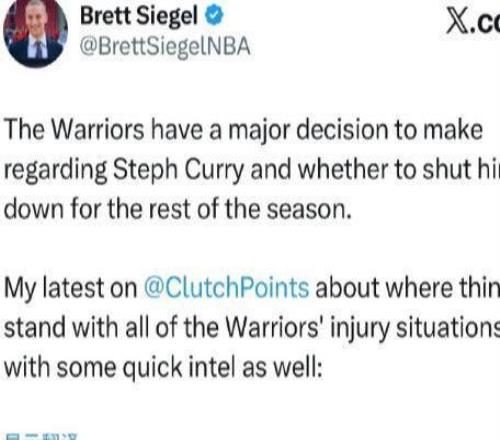 北京時(shí)間3月4日,據(jù)記者Brett Siegel報(bào)道,勇士隊(duì)面臨一個(gè)重大決定,那就是是否在常規(guī)賽剩余的比賽中讓庫(kù)里回歸。...