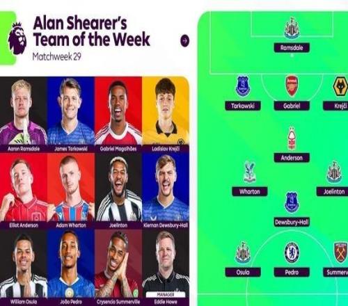 英超聯(lián)賽官方公布了阿蘭-希勒評(píng)選的第28輪最佳陣容,?;倏恕⒉剪斨Z-費(fèi)爾南德斯、謝爾基、廷貝爾等人在列。...