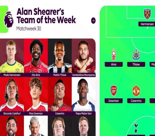英超第30輪戰(zhàn)罷,英超官方公布了阿蘭-希勒評(píng)選的本輪最佳陣容,布魯諾-費(fèi)爾南德斯、道曼、里沙利松等人在列。阿...