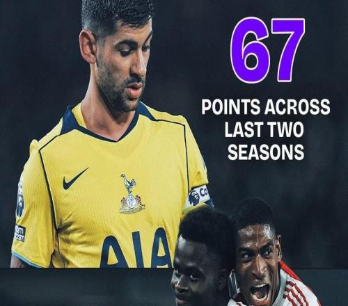 阿森納本賽季英超31輪拿到70分,超過熱刺近兩個賽季總和