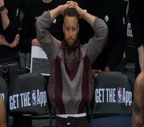 你看!這是庫里最難受的一幕。他痛苦抱頭,隨后低頭坐在替補(bǔ)席,不敢相信眼前發(fā)生的一切。在比賽最后一分鐘,隊友穆...
