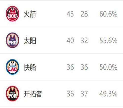 西部最新排名:火箭掉第6馬刺鎖賽區(qū)冠軍勇士終結(jié)3連敗湖人第3