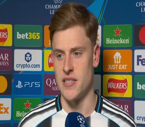 歐冠聯(lián)賽階段第7輪,紐卡主場(chǎng)3-0戰(zhàn)勝埃因霍溫,本場(chǎng)比賽打入1粒進(jìn)球的紐卡前鋒哈維-巴恩斯賽后接受了TNT體育的...