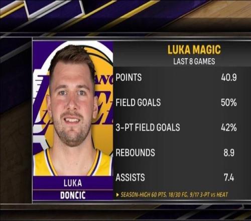 無解,湖人8連勝期間東契奇場均砍下40.9分8.9籃板7.4助攻