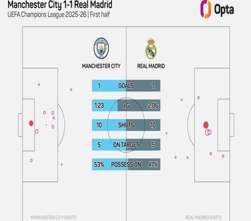 皇馬半場預(yù)期進(jìn)球2.06,為有統(tǒng)計(jì)以來球隊(duì)歐冠淘汰賽單場紀(jì)錄