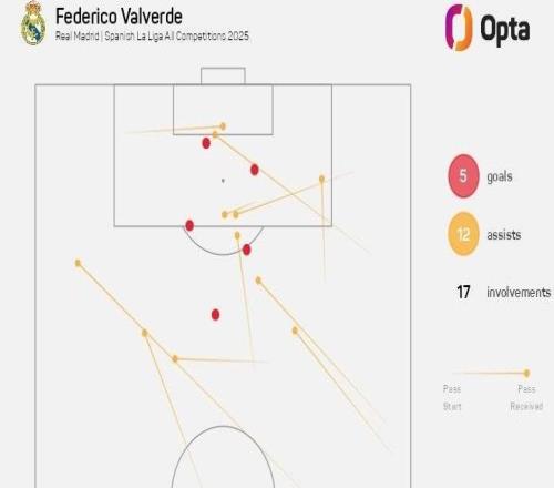 西甲第27輪,皇家馬德里客場2-1擊敗塞爾塔,巴爾韋德在傷停補時階段打入制勝球,至此,巴爾韋德本賽季已直接參與17...
