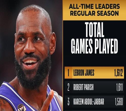 詹姆斯常規(guī)賽出場數(shù)達1612場,超越帕里什獨享NBA歷史第一