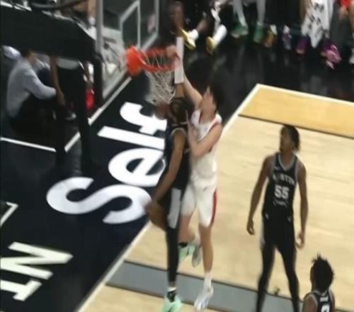 舉火燒天!楊瀚森接球順下單臂隔扣班克斯,目前9中9獨(dú)攬20分