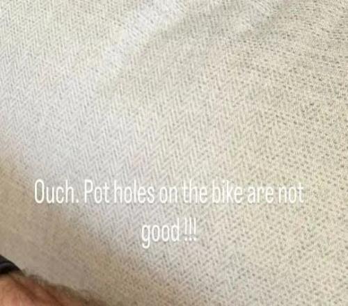 希勒騎車(chē)時(shí)因路面坑洞摔傷,手部和腿部有多處擦傷