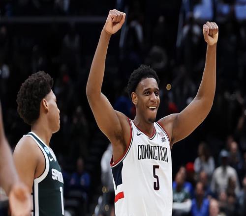 NCAA瘋狂三月甜蜜16強(qiáng)賽,全美第7號(hào)種子康涅狄格大學(xué)以67比63險(xiǎn)勝了全美第11號(hào)種子密歇根州立大學(xué),晉級(jí)精英8強(qiáng)...
