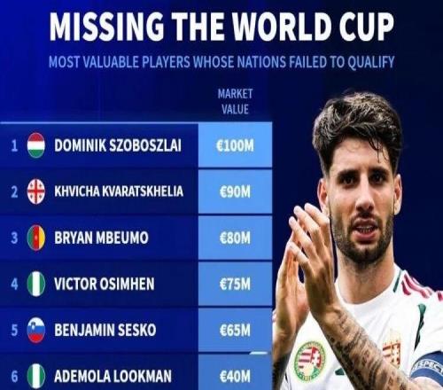 世歐預(yù)附加賽進入決賽階段,德轉(zhuǎn)官方統(tǒng)計無緣今夏世界杯身價最高的球員。匈牙利當家球星、利物浦中場索博斯洛...