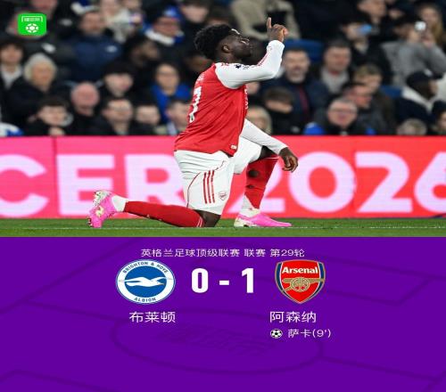劍南春阿森納10布萊頓擴(kuò)大積分榜領(lǐng)先優(yōu)勢(shì),薩卡一錘定音