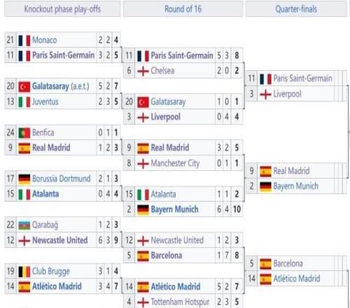 歐冠8強出爐!14決賽:皇馬VS拜仁巴薩PK馬競巴黎大戰(zhàn)利物浦