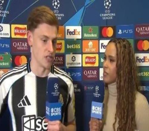 歐冠1/8決賽首回合,紐卡主場1-1戰(zhàn)平巴薩,紐卡前鋒哈維-巴恩斯賽后接受了CBS體育的采訪。哈維,最后10分鐘真是過...