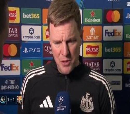 歐冠1/8決賽首回合,紐卡主場1-1戰(zhàn)平巴薩,紐卡主帥埃迪-豪賽后接受了拜因體育的采訪。我不知道該祝賀你們打出...